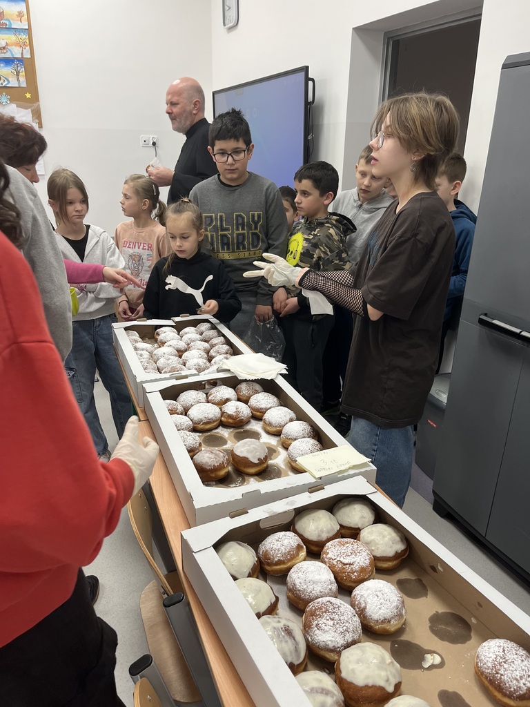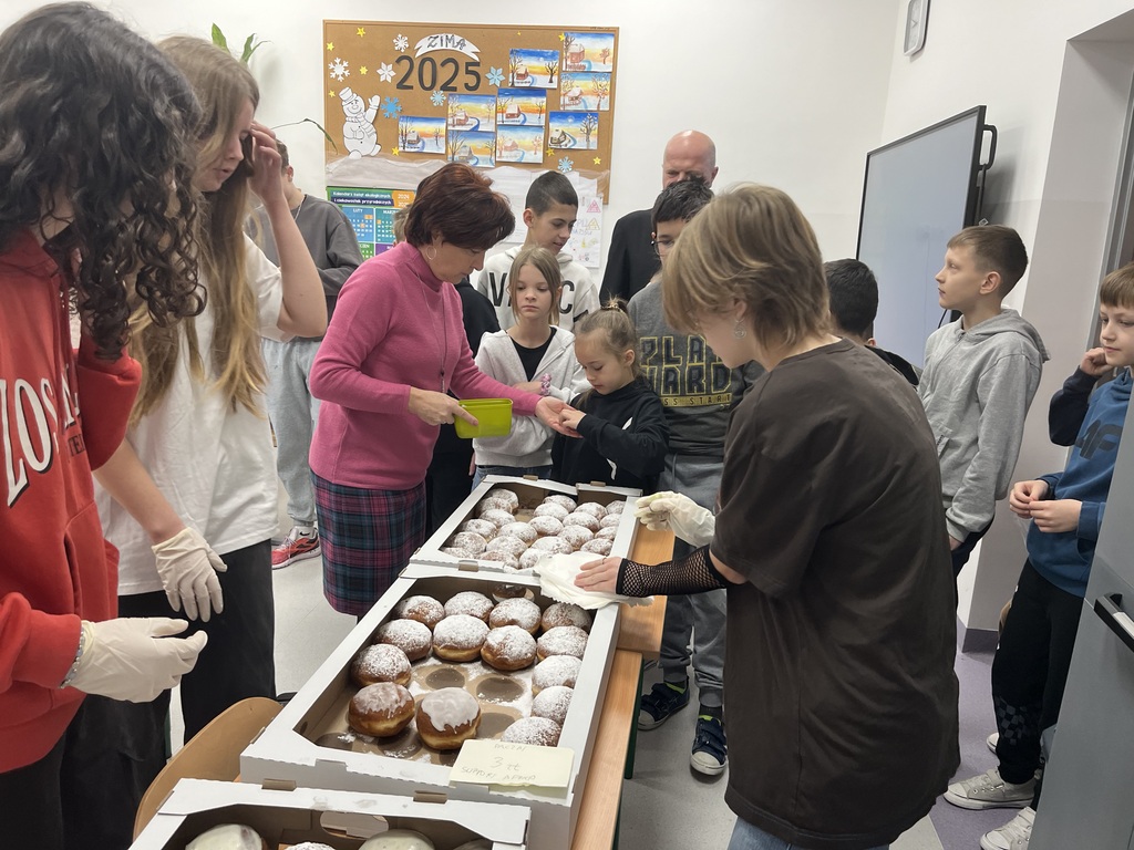 Bardzo dziękujemy Uczniom: Weronice (kl.7) i Oli, Laurze i Filipowi (kl.8) za zaangażowanie w sprzedaż pączków na szkolnym kiermaszu. Dziękujemy również Piekarni Pana Henryka Migdała z Zakliczyna za pyszne pączki w atrakcyjnej cenie oraz wszystkim, którzy kupując je, dołączyli do tej szlachetnej akcji pomocowej.