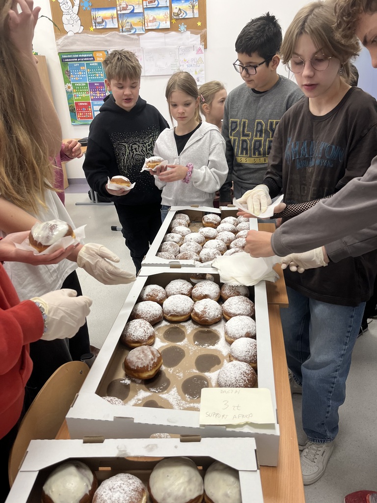 W naszej szkole tę inicjatywę podjął w dniu 27 lutego Samorząd Uczniowski pod opieką Pań Joanny Armatys i Krystyny Gotfryd. Fundusze zebrane ze sprzedaży pączków zostaną wykorzystane w celu udzielenia pomocy najuboższym i najbardziej potrzebującym mieszkańcom Republiki Środkowej Afryki.