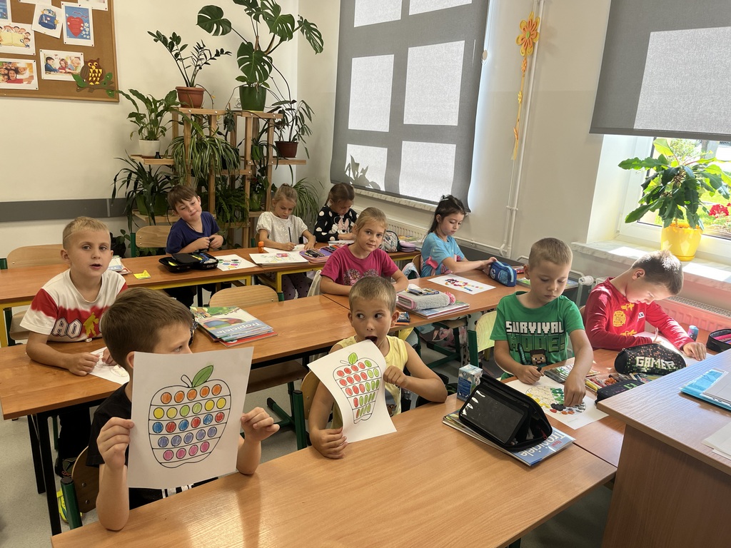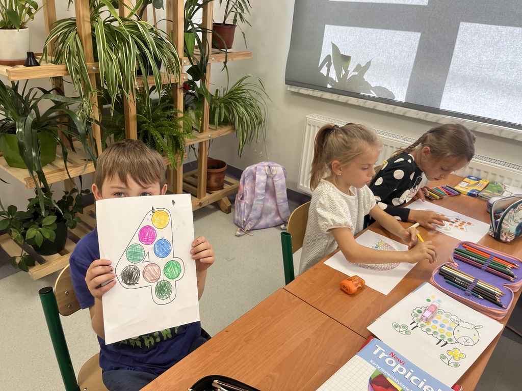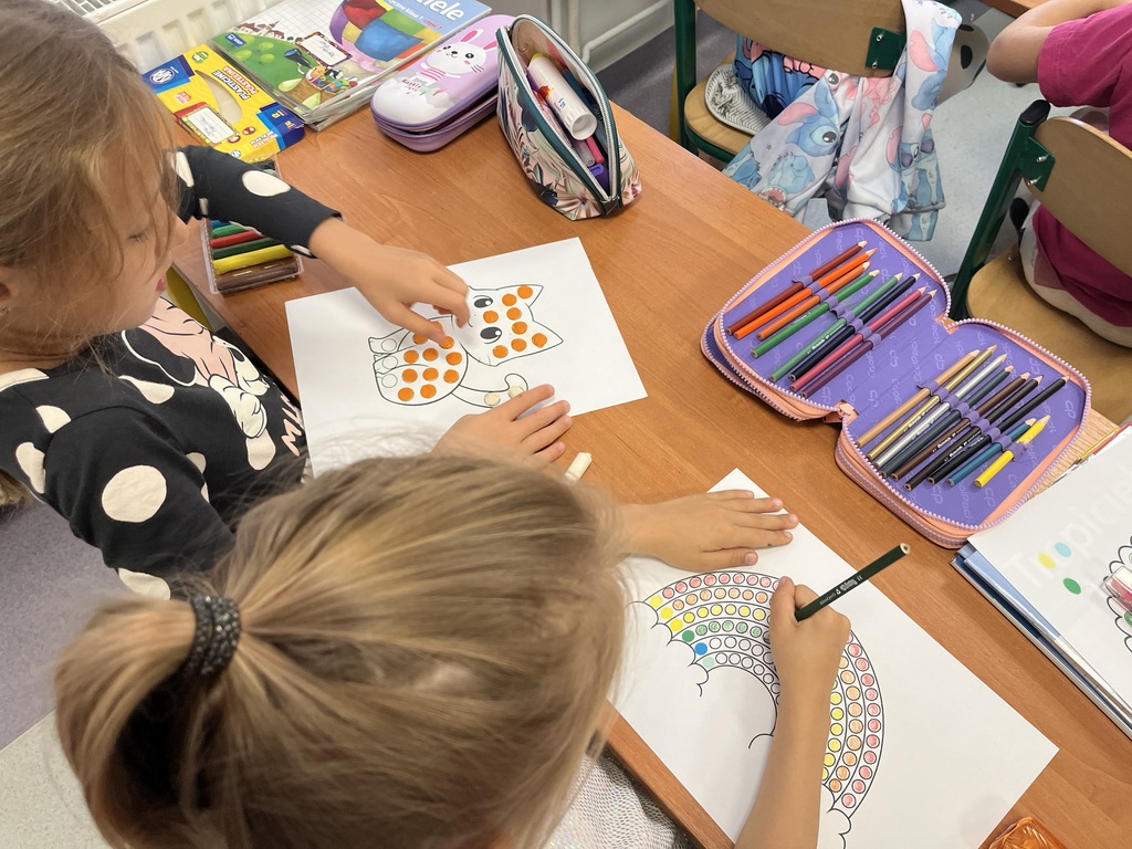 Nasza szkoła również włączyła się w obchody tego wyjątkowego dnia. Pierwszoklasiści postawili w tym dniu bardzo dużo kropek oraz chętnie uczestniczyli w zadaniach, oczywiście z kropką w roli głównej. Wspólnie odkryliśmy, że kropki towarzyszą nam dookoła w naszym codziennym życiu. Dzieci wymyślały co może powstać z kropki, tworzyły ciekawe prace plastyczne. Z wielkim zaangażowaniem i odwagą prezentowały swoje umiejętności. Było kolorowo, radośnie oraz twórczo. Natomiast starsi uczniowie, z kl. VI i VII na lekcji matematyki podczas powtarzania kolejności wykonywania działań kodowali kropkowy obrazek.