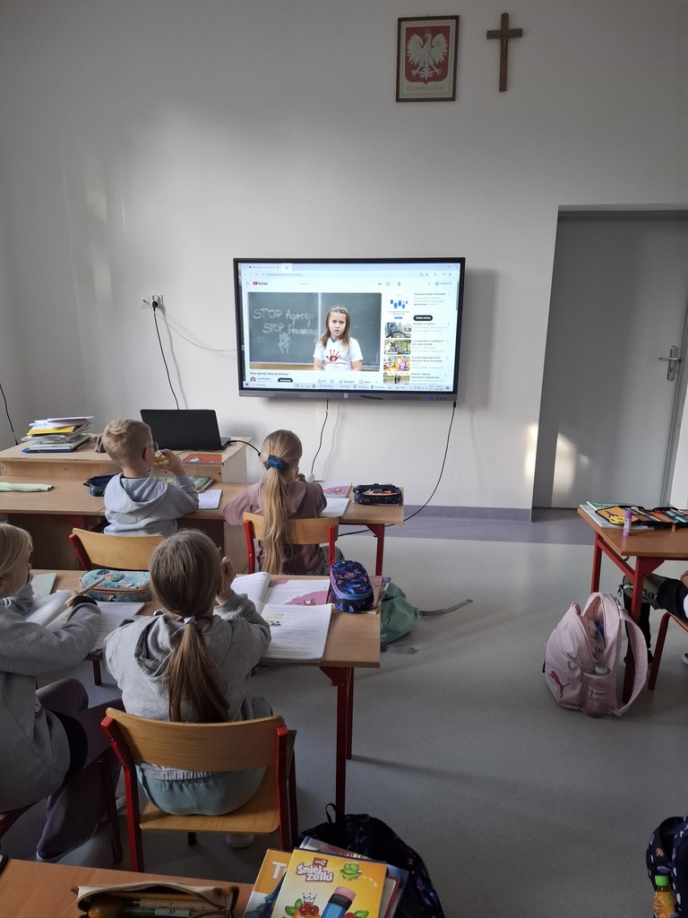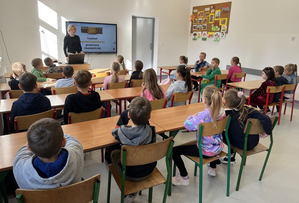 Działania podjęte w ramach „ Tygodnia o przeciwdziałaniu przemocy rówieśniczej” miały na celu zwiększenie świadomości uczniów na temat przemocy, promowania szacunku oraz empatii. Obejmowały one takie działania jak: przygotowanie i rozwieszenie gazetki z informacjami na temat rozpoznawania przemocy, jej rodzajów oraz sposobów reagowania, przedstawienie filmu edukacyjnego podczas zajęć rewalidacyjnych „Odkrywamy emocje”, w ramach udzielanej pomocy psychologiczno-pedagogicznej zrealizowanie tematu „Stop agresji, stop przemocy!”. W ramach działań tego tygodnia uczniowie klas 1-3 uczestniczyli w obchodach Ogólnopolskiego Dnia Głośnego Czytania. Dzieci wysłuchały utworu pt. „Uwierz w siebie” autorstwa Asi Olejarczyk, czytanego przez osoby dorosłe (bibliotekarka, nauczyciel) oraz starszych uczniów. Spotkanie dopełniły rozmowy na temat swoich mocnych stron, wiary w siebie oraz poczucia własnej wartości.