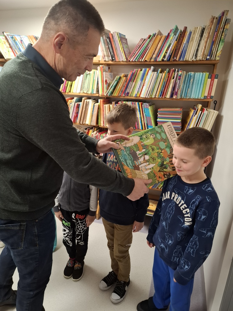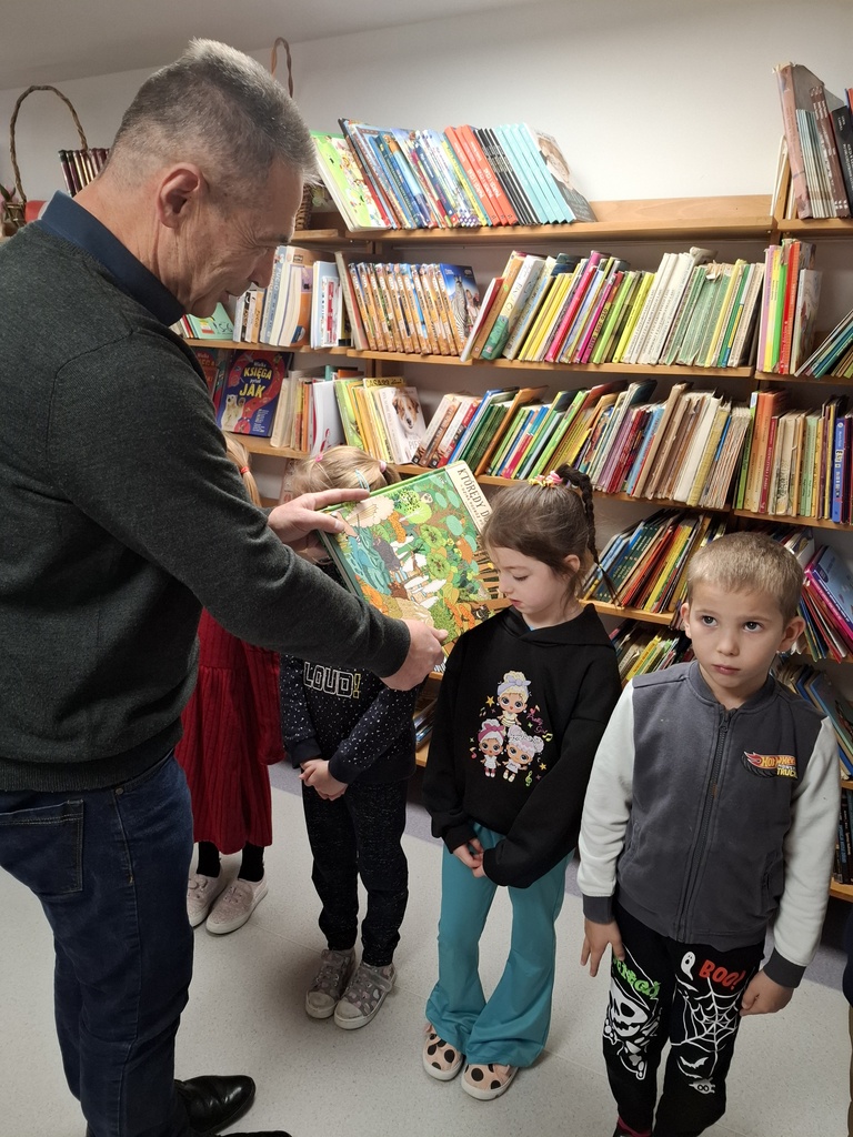 Bibliotekarka zapoznała dzieci z regulaminem biblioteki szkolnej i zachęciła najmłodszych do częstego korzystania z księgozbioru podręcznego i wypożyczania książeczek.