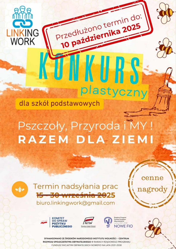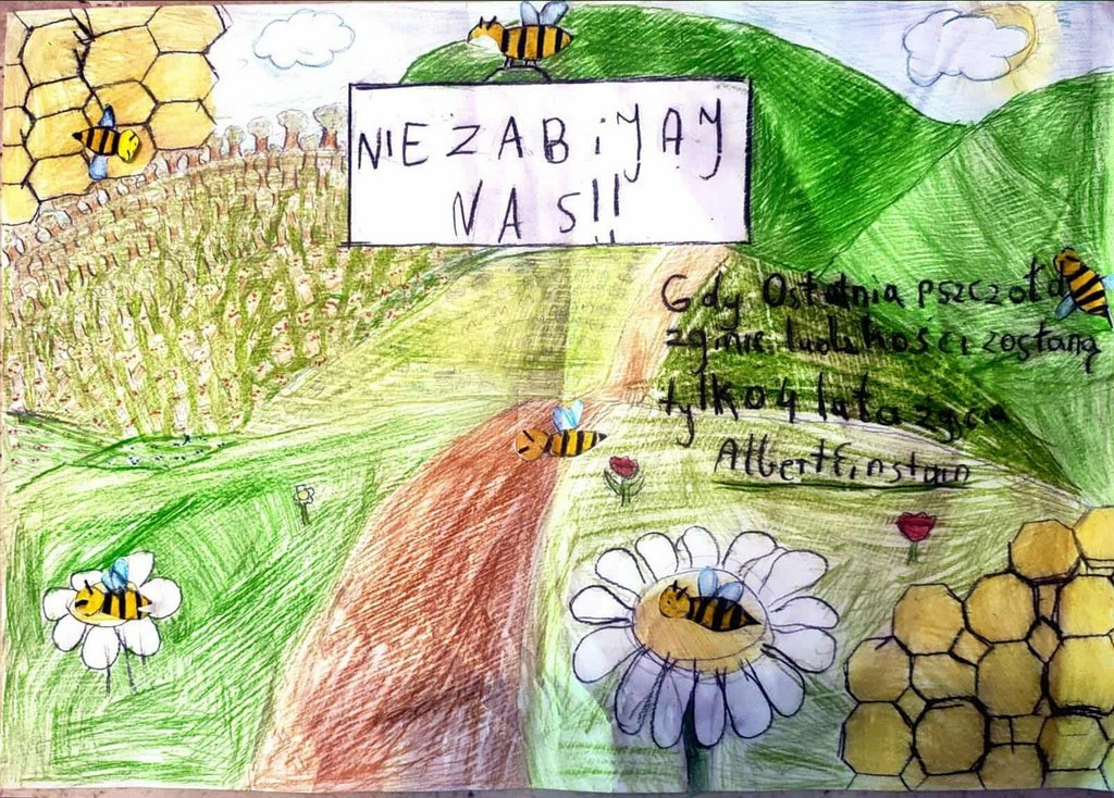 Z radością ogłaszamy, że zakończyliśmy konkurs plastyczny dla szkół podstawowych „Pszczoły, Przyroda i My – Razem dla Ziemi!”. Wasze prace były pełne kreatywności, wrażliwości i pięknych przesłań o trosce o naszą planetę. Każda z nich pokazała, że młode pokolenie doskonale rozumie, jak ważne są pszczoły i ochrona przyrody. Komisja Konkursowa miała niełatwe zadanie, bo poziom artystyczny i pomysłowość uczestników były naprawdę imponujące!