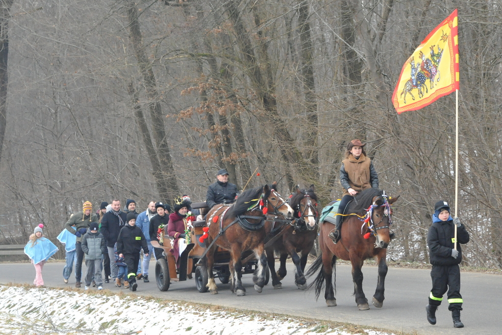 Korowód przeszedł po raz dwunasty przez naszą parafię. Tworzyli go jeźdźcy konni, wozy ciągnące Królów oraz kapelę i śpiewaków. Za nimi podążali pozostali parafianie, Koła Gospodyń z Policht i Brzozowej oraz goście. Całość zamykali strażacy, którzy konwojowali pochód. W orszaku wzięli udział również uczniowie naszej szkoły należący do Młodzieżowej Drużyny Pożarniczej wraz z rówieśnikami z Policht. Ubrani w mundury tworzyli jego czołówkę. W miejscu spotkania zacnych Mędrców ksiądz proboszcz Iwan Cabaj, który odczytał fragment ewangelii opisujący to ważne wydarzenie i przekazał błogosławieństwo papieża Leona XIV dla wszystkich Orszaków w całej Polsce. Dyrektor Szkoły Bolesław Buratowski podziękował tym, którzy zaangażowali się w organizację przedsięwzięcia i w nim uczestniczyli. Następnie wszyscy, przy dźwiękach kapeli, ze śpiewem kolęd ruszyli w stronę kościoła. Tutaj przywitał ich ksiądz Stanisław Wojtas i w procesji wprowadził i do świątyni. Królowie pokłonili się Dzieciątku, złożyli dary i rozpoczęła się msza święta, której muzyczną oprawę dali muzycy z Jastrzębi, Faściszowej oraz Siemiechowa.