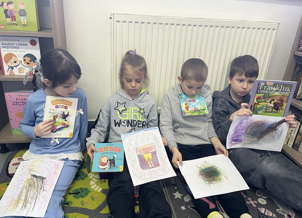 W dniu 27.02.2026 roku najmłodsi uczniowie naszej szkoły wraz z wychowawczynią ponownie wybrali się do biblioteki publicznej. Pani bibliotekarka zaprezentowała uczniom utwór pt. „Wszystkie nasze strrrachy! Bajki wspierające” autorstwa Magdaleny i Piotra Mieśników. To książka dla dzieci w wieku przedszkolnym oraz wczesnoszkolnym, pomagająca oswoić lęki, takie jak burza czy ciemność.